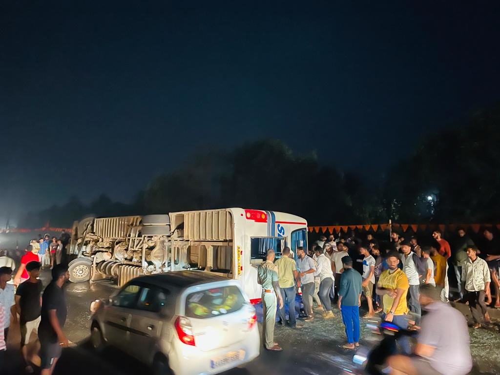 ಮಂಗಳೂರಿನಿಂದ ಬೆಂಗಳೂರಿಗೆ ಹೊರಟಿದ್ದ ಖಾಸಗಿ ಬಸ್ ತುಂಬೆಯಲ್ಲಿ ಪಲ್ಟಿ: ಹಲವು ಪ್ರಯಾಣಿಕರಿಗೆ ಗಾಯ