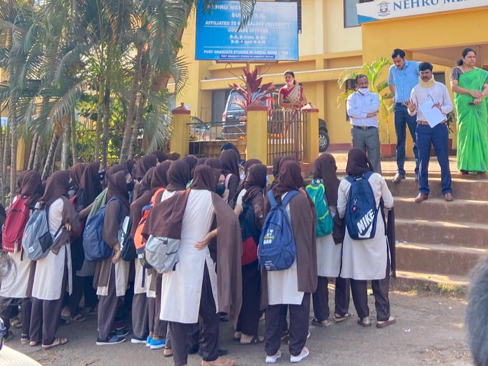 ಸುಳ್ಯ ಎನ್ಎಂಸಿ ಕಾಲೇಜಿನಲ್ಲಿ ಹಿಜಾಬ್ ಧರಿಸಿದ ವಿದ್ಯಾರ್ಥಿಗಳಿಗೆ ತರಗತಿಗೆ ಅನುಮತಿ ನಿರಾಕರಣೆ: