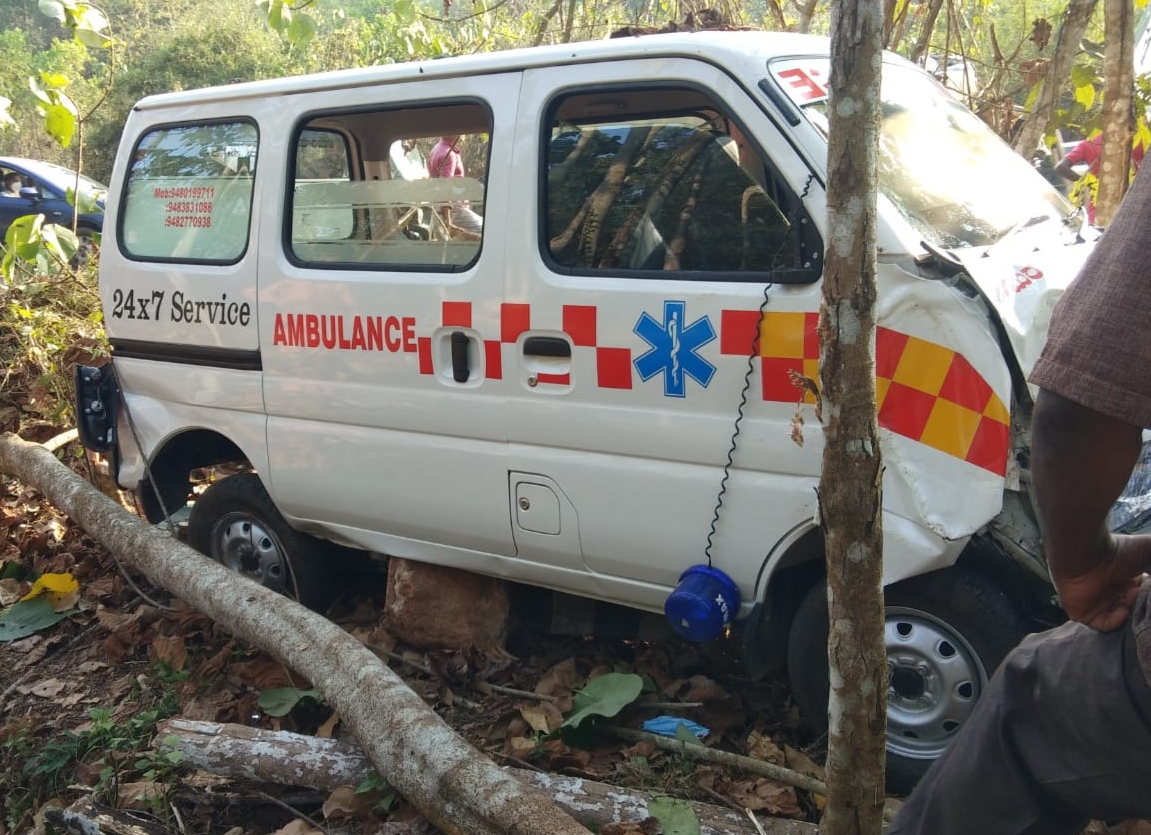 ಸುಳ್ಯ: ರೋಗಿಯನ್ನು ಪುತ್ತೂರಿಗೆ ಕರೆದೊಯ್ಯುತ್ತಿದ್ದ ಅಂಬ್ಯುಲೆನ್ಸ್ ಕೌಡಿಚಾರ್ ನಲ್ಲಿ ಅಪಘಾತ