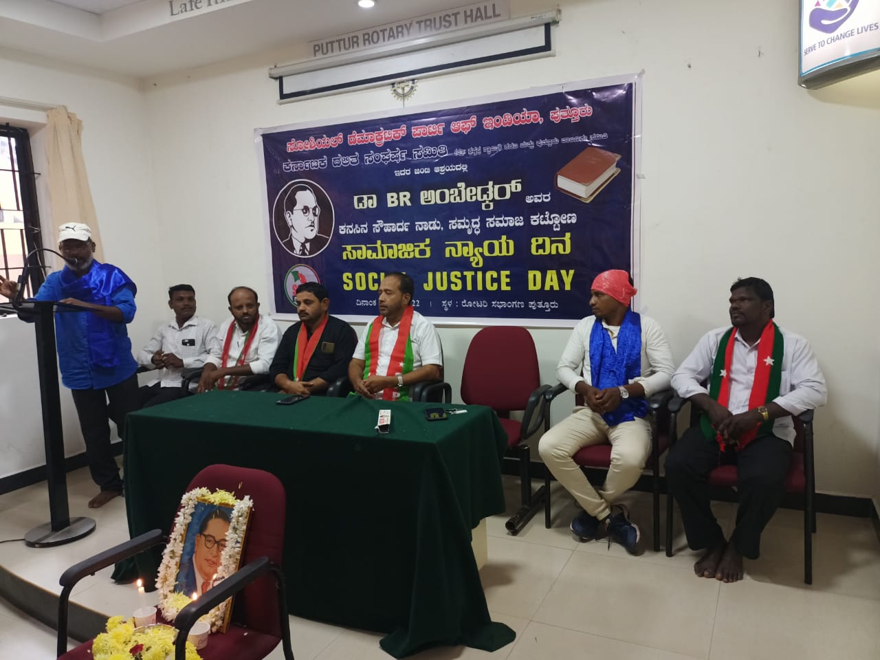 ಪುತ್ತೂರು: ಸೋಶಿಯಲ್ ಡೆಮಾಕ್ರೆಟಿಕ್ ಪಾರ್ಟಿ ಆಫ್ ಇಂಡಿಯ ಪುತ್ತೂರು ವಿಧಾನ ಸಭಾ ಕೇತ್ರ ಹಾಗೂ ದಲಿತ ಸಂಘರ್ಷ ಸಮಿತಿ ಪುತ್ತೂರು & ಕಡಬ (ಪ್ರೊ.ಕ್ರಷ್ಣಪ್ಪ ಸ್ಥಾಪಿತ) ಇದರ ಜಂಟಿ ಆಶ್ರಯದಲ್ಲಿ ಸಂವಿಧಾನ ಶಿಲ್ಪಿ ಬಾಬಾ ಸಾಹೇಬ್ ಡಾ.ಬಿ.ಆರ್.ಅಂಬೇಡ್ಕರ್ರವರ 131 ನೇ ಜನ್ಮ ದಿನದ ಪ್ರಯುಕ್ತ ಸಾಮಾಜಿಕ ನ್ಯಾಯ ದಿನ ಕಾರ್ಯಕ್ರಮವು ಇಂದು ಪುತ್ತೂರಿನ ರೋಟರಿ ಜಿ.ಎಲ್ ಸಭಾ ಭವನದಲ್ಲಿ ನಡೆಯಿತು.