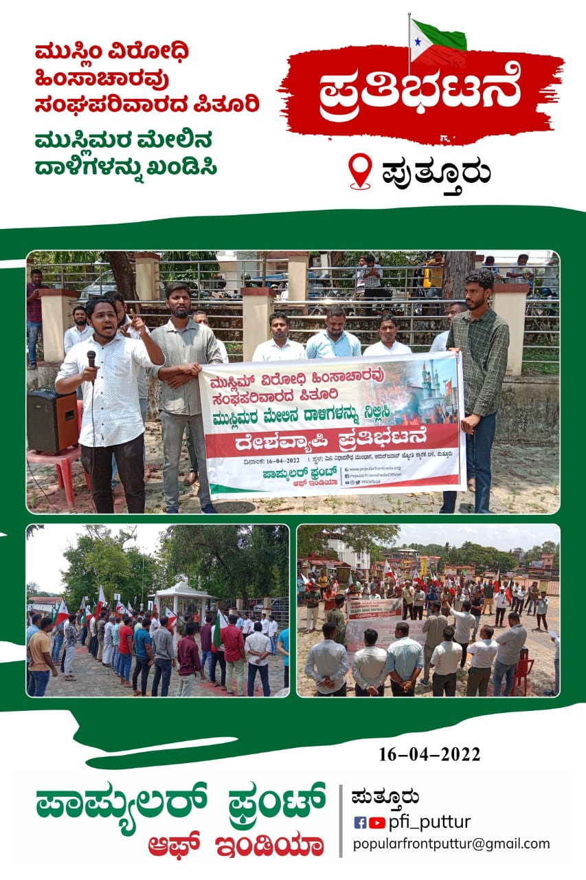 ದೇಶದಲ್ಲಿ ನಡೆಯುತ್ತಿರುವ ಮುಸ್ಲಿಮರ ಮೇಲಿನ ಹಿಂಸಾಚಾರವನ್ನು ಖಂಡಿಸಿ ಪಿಎಫ್ಐ ವತಿಯಿಂದ ಪುತ್ತೂರಿನಲ್ಲಿ ಪ್ರತಿಭಟನೆ