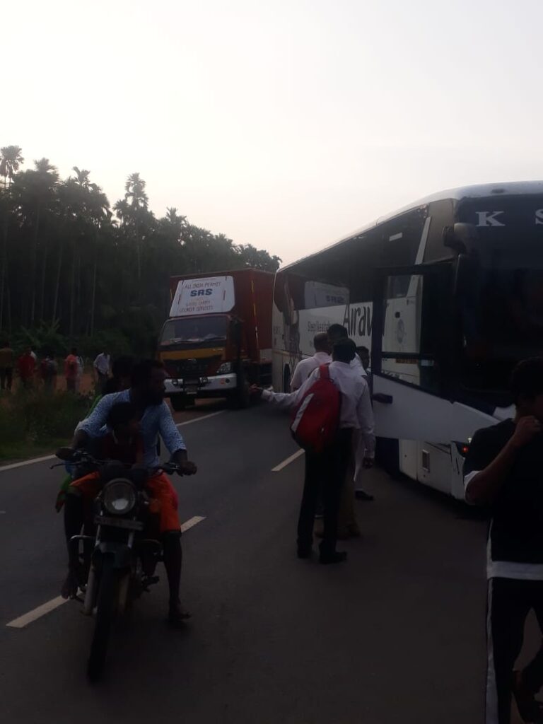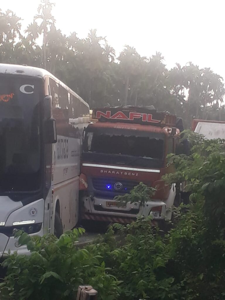 ಬುಡೋಳಿ: ಖಾಸಗಿ ಬಸ್, ಲಾರಿ, ಕಾರು ನಡುವೆ ಸರಣಿ ಅಪಘಾತ: ಮಂಗಳೂರು-ಬೆಂಗಳೂರು ರಾಷ್ಟ್ರೀಯ ಹೆದ್ದಾರಿ ಬ್ಲಾಕ್
