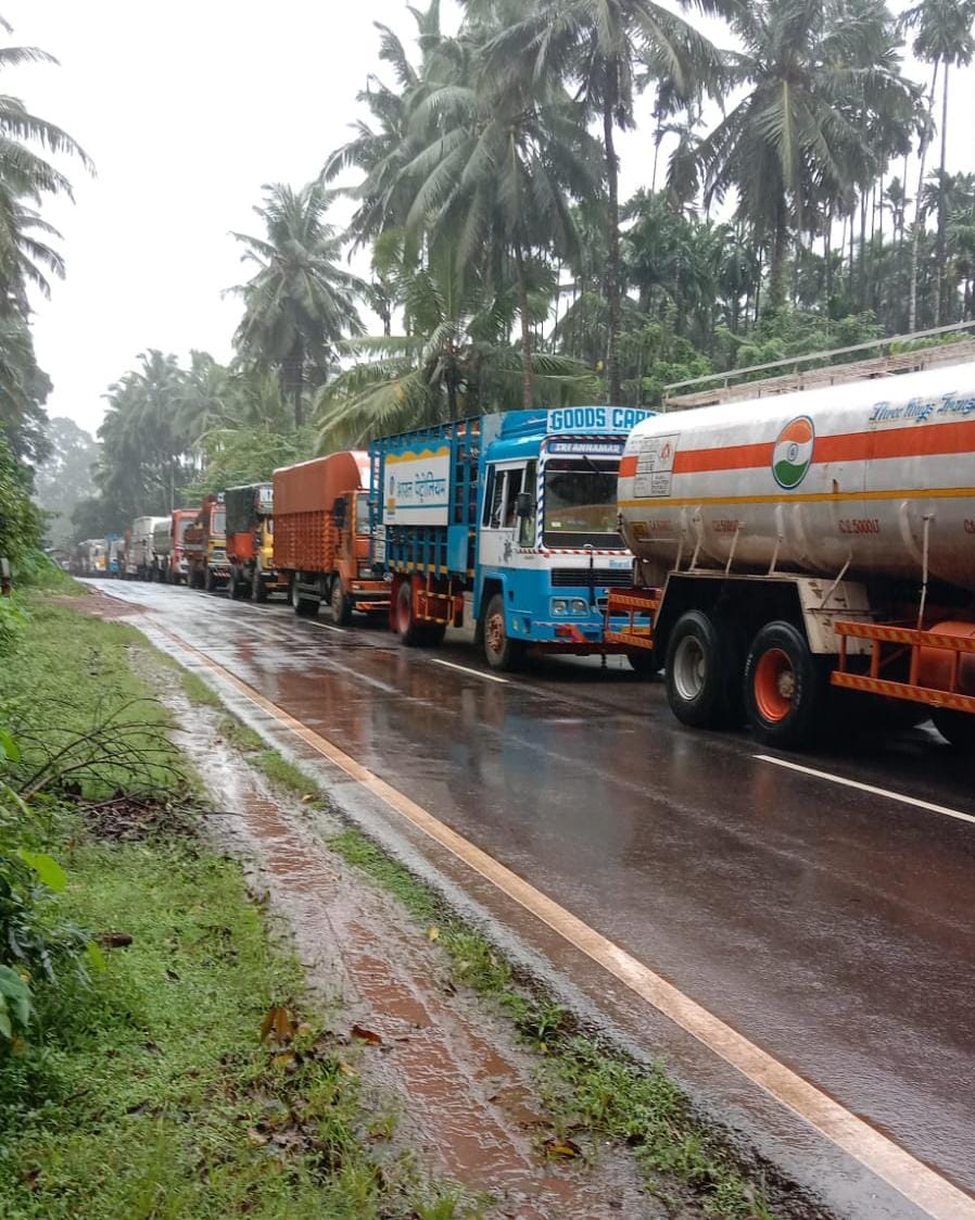 ಸುಳ್ಯ ತಾಲ್ಲೂಕಿನ ಪೇರಾಜೆ ಹಾಗೂ ಆರಂಬೂರು ಬಳಿ ಹೆದ್ದಾರಿಯಲ್ಲಿ ಭಾರಿ ಪ್ರಮಾಣದಲ್ಲಿ ನೀರು ನಿಂತಿರುವುದರಿಂದ ವಾಹನಗಳ ಸಂಚಾರ ಸ್ಥಗಿತಗೊಂಡಿದೆ. ನೂರಾರು ವಾಹನಗಳು ರಸ್ತೆಯಲ್ಲಿ ಸಿಲುಕಿವೆ.