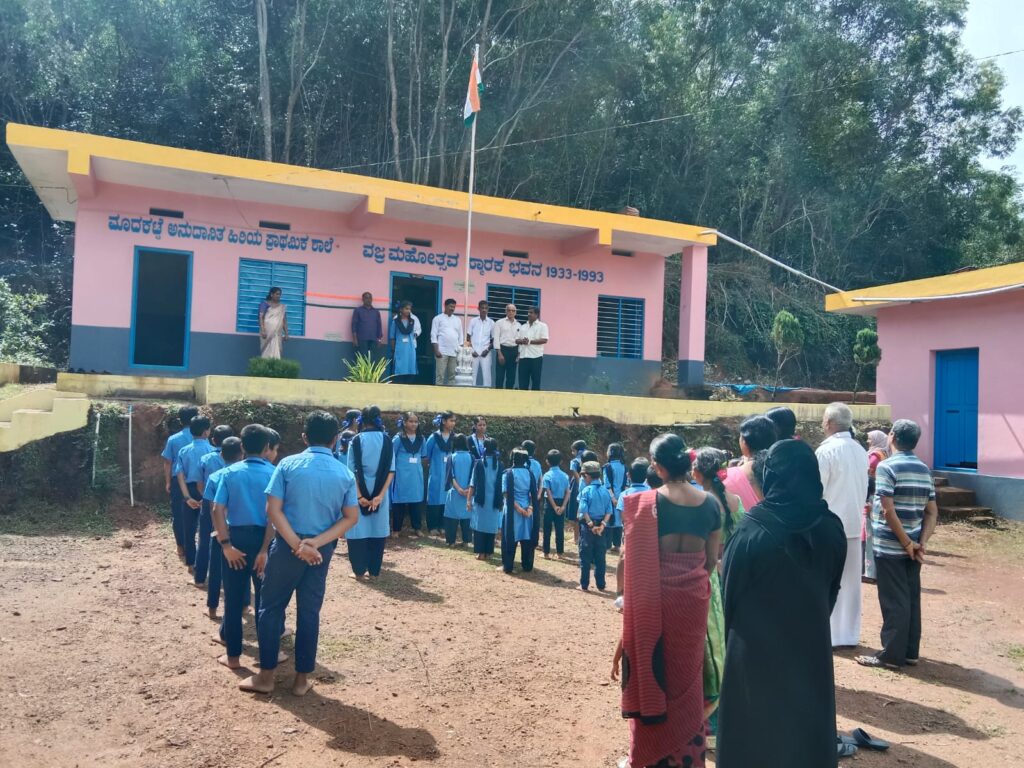 ಮಾದಕಟ್ಟೆ ಅನುದಾನಿತ ಹಿ.ಪ್ರಾ.ಶಾಲೆಯಲ್ಲಿ ಶಾಲಾಭಿವೃಧ್ದಿ ಸಮಿತಿ ಅಧ್ಯಕ್ಷ ಪಿ.ಎನ್.ಶ್ರೀ ಕಾಂತ್ ಭಟ್ ಧ್ವಜಾರೋಹಣ ಮಾಡಿದರು