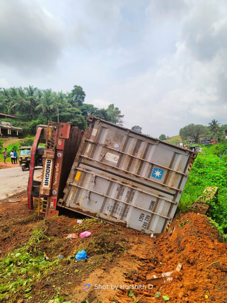 ವಿಟ್ಲ: ಚಾಲಕನ ನಿಯಂತ್ರಣ ಕಳೆದು ರಸ್ತೆ ಬದಿಗೆ ಉರುಳಿ ಬಿದ್ದ ಕಂಟೈನರ್ ಲಾರಿ