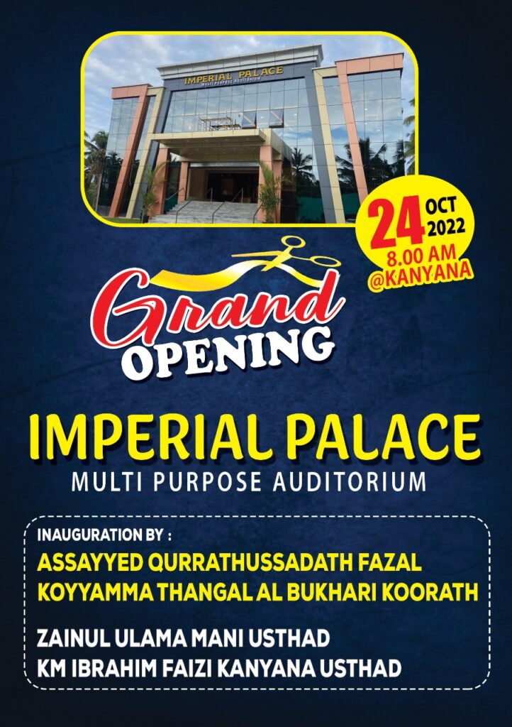 ವಿಟ್ಲ: ಕನ್ಯಾನದಲ್ಲಿ ಅಕ್ಟೋಬರ್ 24 ರಂದು ‘ಇಂಪೀರಿಯಲ್ ಪ್ಯಾಲೇಸ್ ಮಲ್ಟಿ ಪರ್ಪಸ್ ಆಡಿಟೋರಿಯಂ’ ಶುಭಾರಂಭ