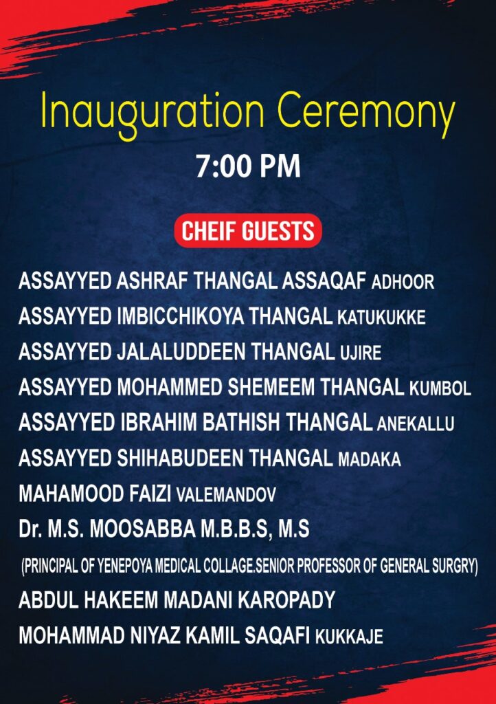 ರಾತ್ರಿ ಸಮಾರೋಪ ಸಮಾರಂಭ ಕಾರ್ಯಕ್ರಮವನ್ನು ಅಸ್ಸಯ್ಯದ್ ಅಶ್ರಫ್ ತಂಙಳ್ ಆದೂರು, ಅಸ್ಸಯ್ಯದ್ ಇಂಬಿಚ್ಚಿಕೋಯ ತಂಙಳ್ ಕಾಟುಕುಕ್ಕೆ, ಜಲಾಲುದ್ದೀನ್ ತಂಙಳ್ ಉಜಿರೆ, ಮಹಮ್ಮದ್ ಶಮೀಮ್ ತಂಙಳ್ ಕುಂಬೋಳ್, ಇಬ್ರಾಹಿಂ ಬಾತಿಶ್ ತಂಙಳ್ ಆನೆಕಲ್ಲು, ಶಿಹಾಬುದ್ದೀನ್ ತಂಙಳ್ ಮದಕ, ಮಹ್ಮೂದ್ ಫೈಝಿ ವಾಲೆಮುಂಡೋವ್, ಡಾ. ಎಮ್. ಎಸ್ ಮೂಸಬ್ಬ (ಪ್ರಿನ್ಸಿಪಾಲ್ ಏನೆಪೋಯ ಮೆಡಿಕಲ್ ಕಾಲೇಜು) ಅಬ್ದುಲ್ ಹಕೀಮ್ ಮದನಿ ಕರೋಪಾಡಿ, ಮೊಹಮ್ಮದ್ ನಿಯಾಝ್ ಕಾಮಿಲ್ ಸಖಾಫಿ ಕುಕ್ಕಾಜೆ ನಿರ್ವಹಿಸಲಿದ್ದಾರೆ.
