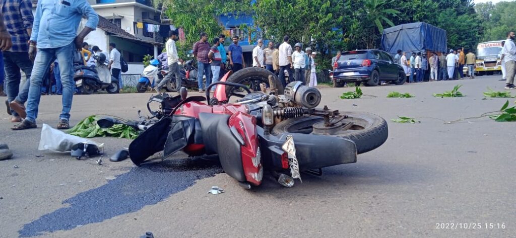 ಬೈಕ್ ಸವಾರ ಮೂಡುಬಿದ್ರೆ ಕಡೆಯಿಂದ ಬಂಟ್ವಾಳ ಕಡೆಗೆ ಹೋಗುತ್ತಿದ್ದ ವೇಳೆ, ಬಿ.ಸಿ.ರೋಡಿನಿಂದ ಮೂಡುಬಿದ್ರೆ ಗೆ ಹೋಗುತ್ತಿದ್ದ ಬೀಡಿ ಸಂಸ್ಥೆಯೊಂದರ ಗೂಡ್ಸ್ ಟೆಂಪೋ ಢಿಕ್ಕಿಯಾಗಿದೆ.