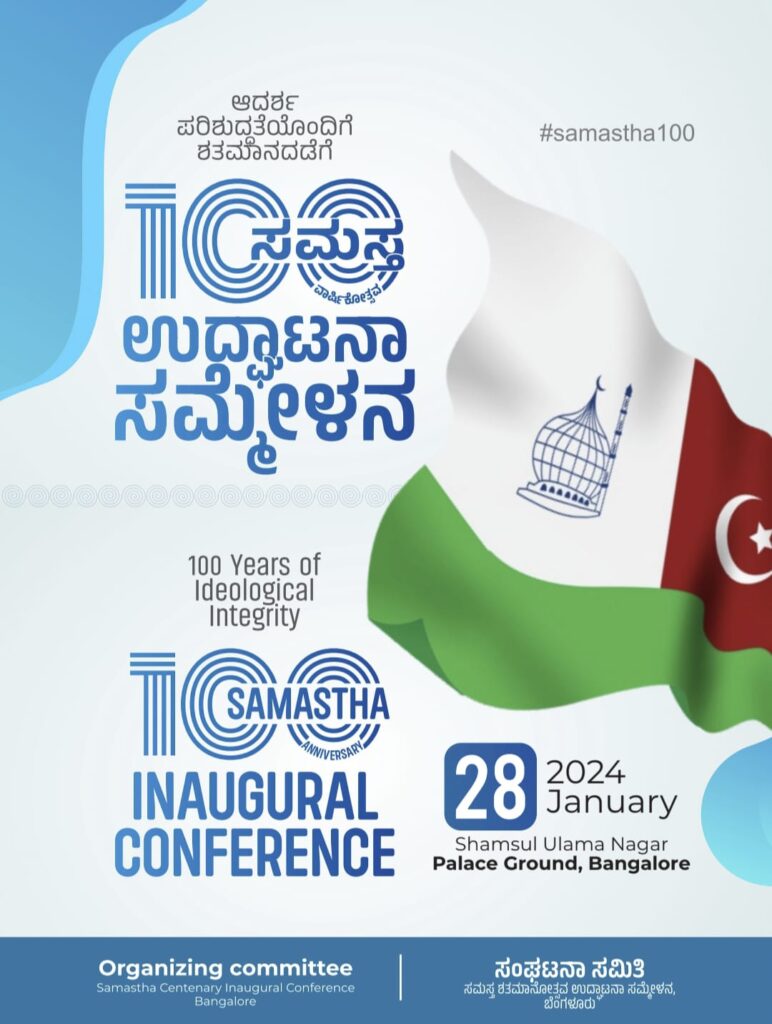 ಮಂಗಳೂರು :ಪ್ರಸಿದ್ಧ ಉಲಮಾ ಸಂಘಟನೆಯಾದ ‘ಸಮಸ್ತ’ ದ 100 ನೇ ವಾರ್ಷಿಕ ಉದ್ಘಾಟನಾ ಸಮ್ಮೇಳನವು ಬೆಂಗಳೂರು ಅರಮನೆ ಮೈದಾನದಲ್ಲಿ ಜರಗಲಿದ್ದು, ಆ ಪ್ರಯುಕ್ತ ಜನವರಿ 19 ರಂದು ಧ್ವಜ ದಿನ ಆಚರಿಸಲು ‘ಸಮಸ್ತ’ ದ ಕೇಂದ್ರೀಯ ಘಟಕ ಕರೆ ನೀಡಿದೆ.