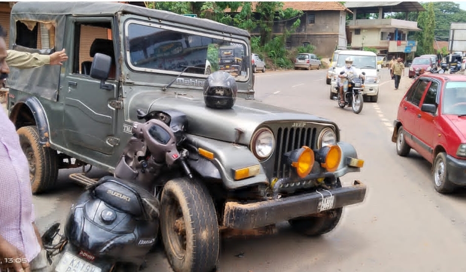 ಜೀಪ್ ಚಾಲಕನ ಅಜಾಗರೂಕತೆಯಿಂದ ಅಪಘಾತ ಸಂಭವಿಸಿದೆ ಎನ್ನಲಾಗಿದ್ದು, ಘಟನೆಯಲ್ಲಿ ಸ್ಕೂಟರ್ ಸಂಪೂರ್ಣ ಜಖಂಗೊಂಡಿದೆ.