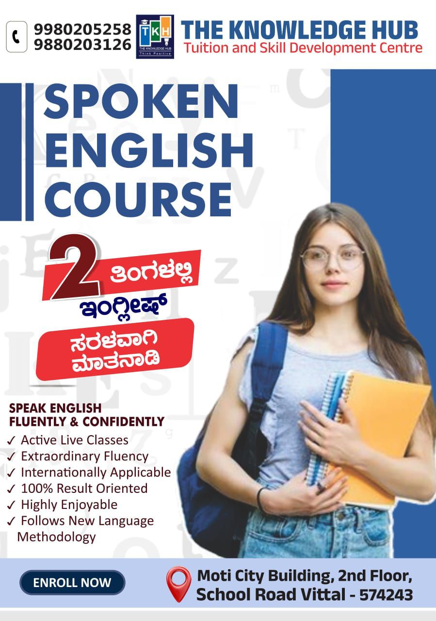 ವಿಟ್ಲ: ವಿಟ್ಲ ಶಾಲಾ ರಸ್ತೆಯ ಮೋತಿ ಸಿಟಿ ಕಟ್ಟಡದಲ್ಲಿ ಇತ್ತೀಚಿಗೆ ಆರಂಭಗೊಂಡ ದಿ ನ್ವಾಲೇಜ್ ಹಬ್ ಟ್ಯೂಷನ್ ಆ್ಯಂಡ್ ಸ್ಕಿಲ್ ಡೆವಲಪ್ಮೆಂಟ್ ಸೆಂಟರ್ ನಲ್ಲಿ ಸ್ಪೋಕನ್ ಇಂಗ್ಲಿಷ್ ಕೋರ್ಸ್ ಆರಂಭಗೊಂಡಿದೆ.