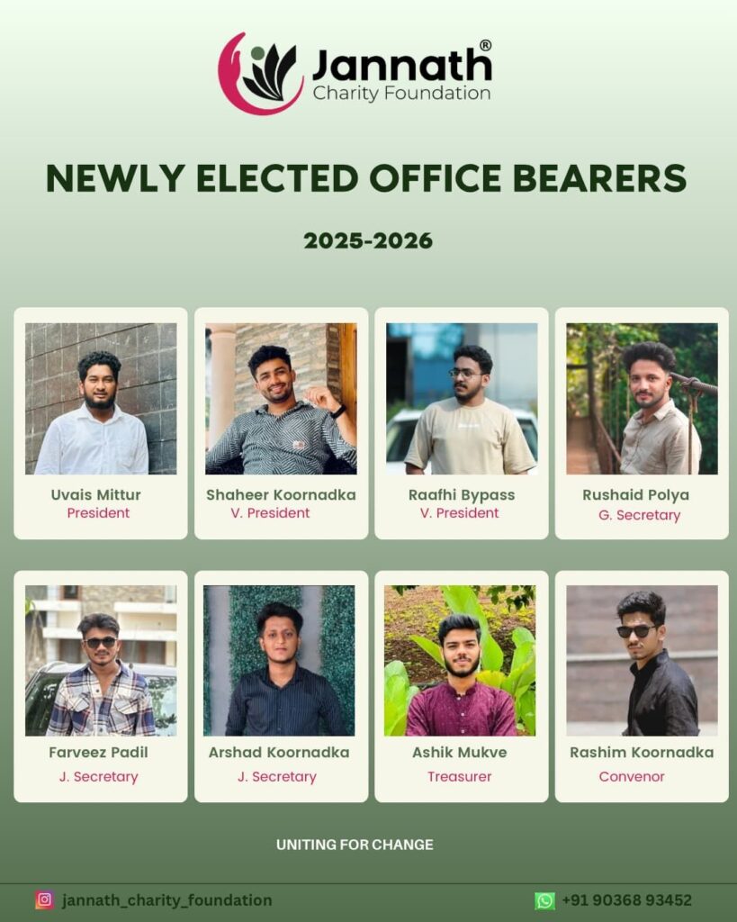 ಜನ್ನತ್ ಚಾರಿಟಿ ಫೌಂಡೇಶನ್(ರಿ)ನ ನೂತನ ಪದಾಧಿಕಾರಿಗಳ ಆಯ್ಕೆ