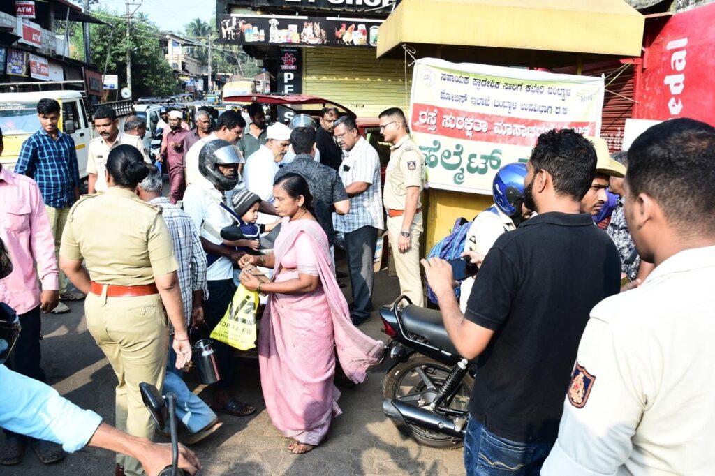 ವಿಟ್ಲದ ಹೃದಯ ಭಾಗದ ನಾಲ್ಕು ರಸ್ತೆಯಲ್ಲಿ ಸಾರಿಗೆ ಇಲಾಖೆಯ ಅಧಿಕಾರಿಗಳು ಮತ್ತು ವಿಟ್ಲ ಪೊಲೀಸ್ ಠಾಣೆಯ ಅಧಿಕಾರಿಗಳು ಜಂಟಿಯಾಗಿ ಸಾರಿಗೆ ಸುರಕ್ಷತಾ ಮಾಸಾಚರಣೆ ಕಾರ್ಯಕ್ರಮ ನಡೆಸಿದರು.