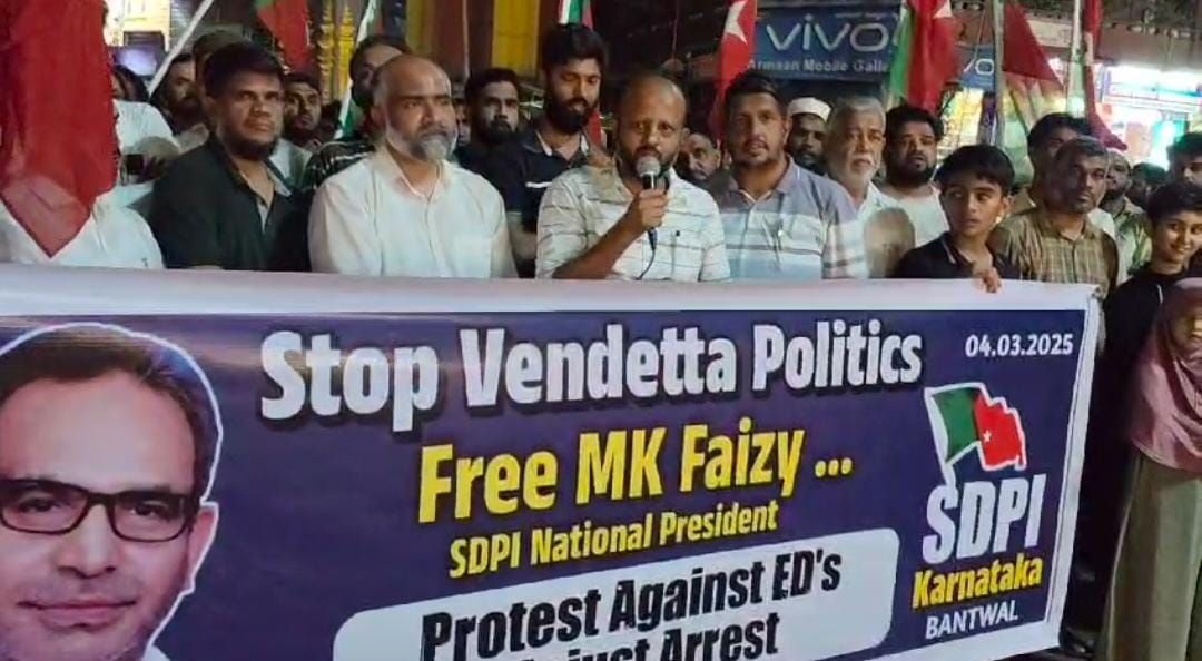 ಬಂಟ್ವಾಳ: ಸೋಶಿಯಲ್ ಡೆಮಾಕ್ರಟಿಕ್ ಪಾರ್ಟಿ ಆಫ್ ಇಂಡಿಯಾ ಬಂಟ್ವಾಳ ವಿಧಾನಸಭಾ ಕ್ಷೇತ್ರ ಸಮಿತಿ ವತಿಯಿಂದ ರಾಷ್ಟ್ರೀಯ ಅಧ್ಯಕ್ಷರಾದ ಎಂ ಕೆ ಫೈಝಿ ಅವರ ಅಕ್ರಮ ಬಂಧನವನ್ನು ಖಂಡಿಸಿ ಬಿ ಸಿ ರೋಡ್ ಕೈಕಂಬ ಜಂಕ್ಷನ್ ನಲ್ಲಿ ಬೃಹತ್ ಪ್ರತಿಭಟನೆ ನಡೆಯಿತು.