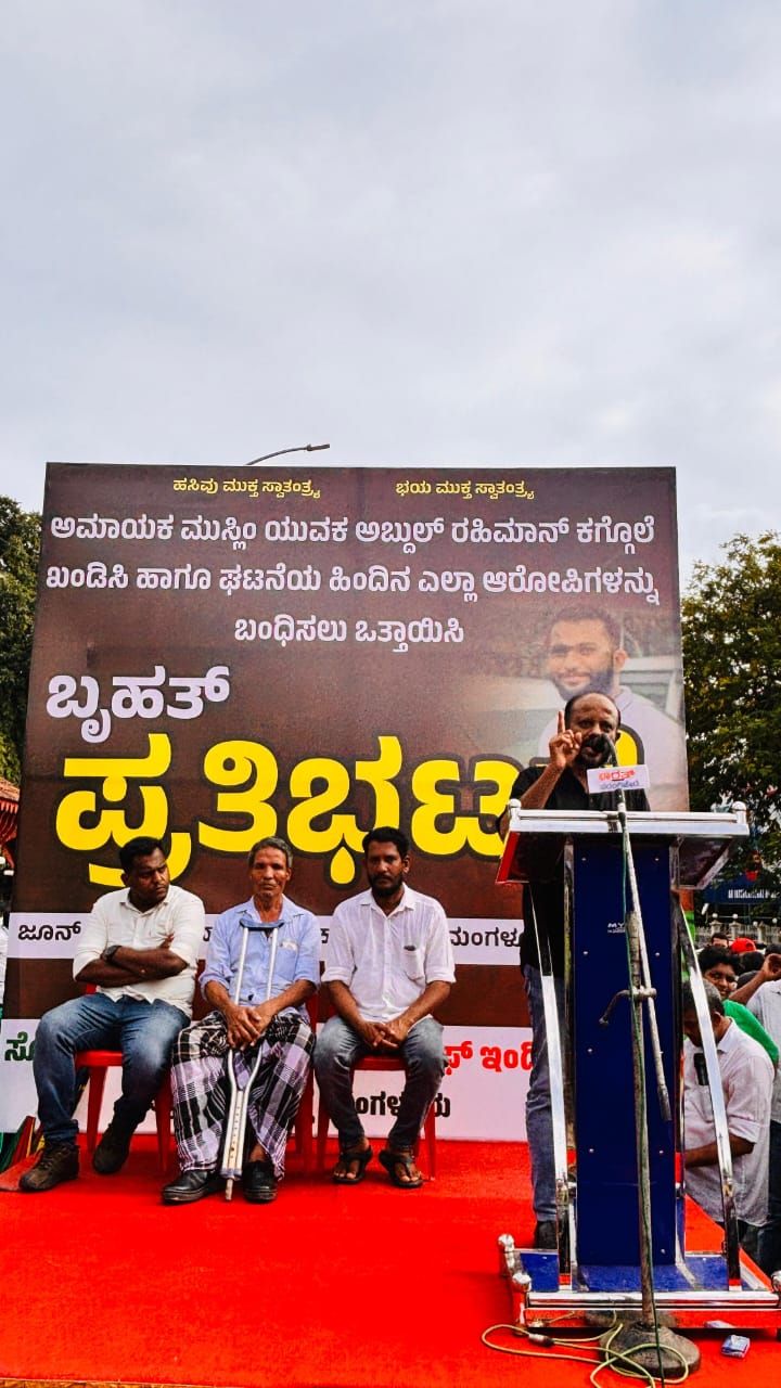 ಅಬ್ದುಲ್ ರಹಿಮಾನ್ ಕೊಲೆಯ ಸಂದರ್ಭದಲ್ಲಿ ಸಂಘಪರಿವಾರದಿಂದ ಕೊಲೆಯತ್ನಕ್ಕೊಳಗಾದ ಕಲಂದರ್ ಶಾಫಿಗೆ ನ್ಯಾಯ ದೊರಕಿಸುವಂತೆ ಹಾಗೂ ಜಿಲ್ಲೆಯ ಸೌಹಾರ್ದಕ್ಕೆ ಮಾರಕವಾದ ಇಂತಹ ದುರ್ಘಟನೆಗಳಿಗೆ ಕಡಿವಾಣ ಹಾಕದೆ ಕಣ್ಣಿದ್ದೂ ಕುರುಡರಂತೆ ವರ್ತಿಸುತ್ತಿರುವ ರಾಜ್ಯ ಗೃಹ ಇಲಾಖೆಯ ವೈಫಲ್ಯದ ವಿರುದ್ಧವೂ ಈ ಪ್ರತಿಭಟನೆಯಲ್ಲಿ ಸಹಸ್ರಾರು ಜನರು ಸೇರಿ ಆಕ್ರೋಶ ಹೊರಹಾಕಿದರು.