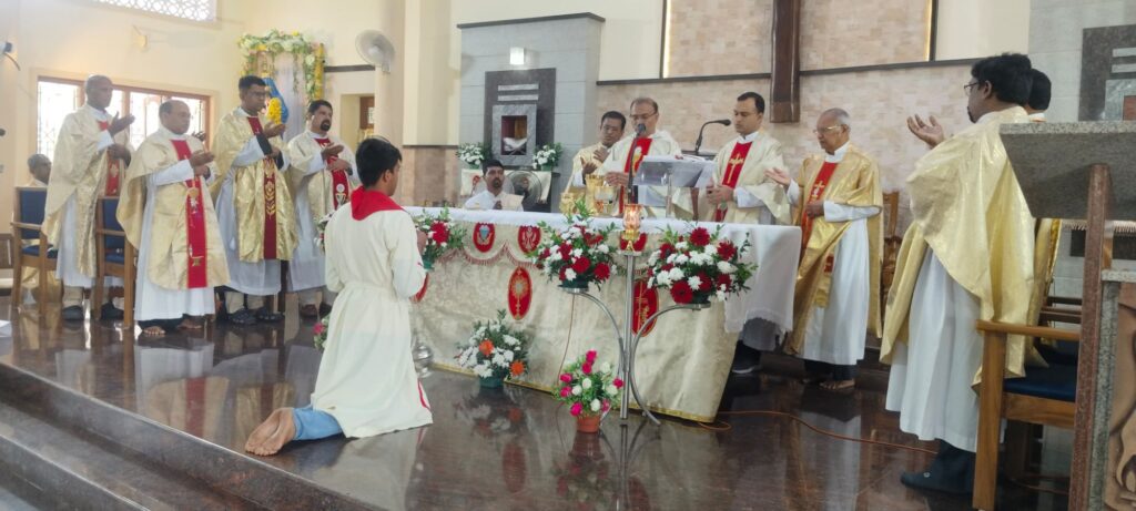 ಫಾ. ಮ್ಯಾಕ್ಸಿಮ್ ಡಿಸಿಲ್ವಾ ಮತ್ತು ಇತರ ಧರ್ಮಗುರುಗಳು ಪವಿತ್ರ ಬಲಿ ಪೂಜೆ ನಡೆಸಿದರು. ವಂದನೀಯ ಫಾ. ಐವನ್ ಮೈಕಲ್ ರೊಡ್ರಿಗಸ್ ಅವರು ಧರ್ಮೋಪದೇಶ ನೀಡಿದರು.