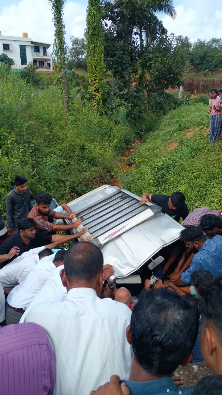 ಕುಶಾಲನಗರದಿಂದ ಪಣೋಲಿಬೈಲ್ ಕ್ಷೇತ್ರಕ್ಕೆ ಕುಟುಂಬ ಸಮೇತ ಬರುತ್ತಿದ್ದಾಗ ಅಪಘಾತ ನಡೆದಿದೆ.