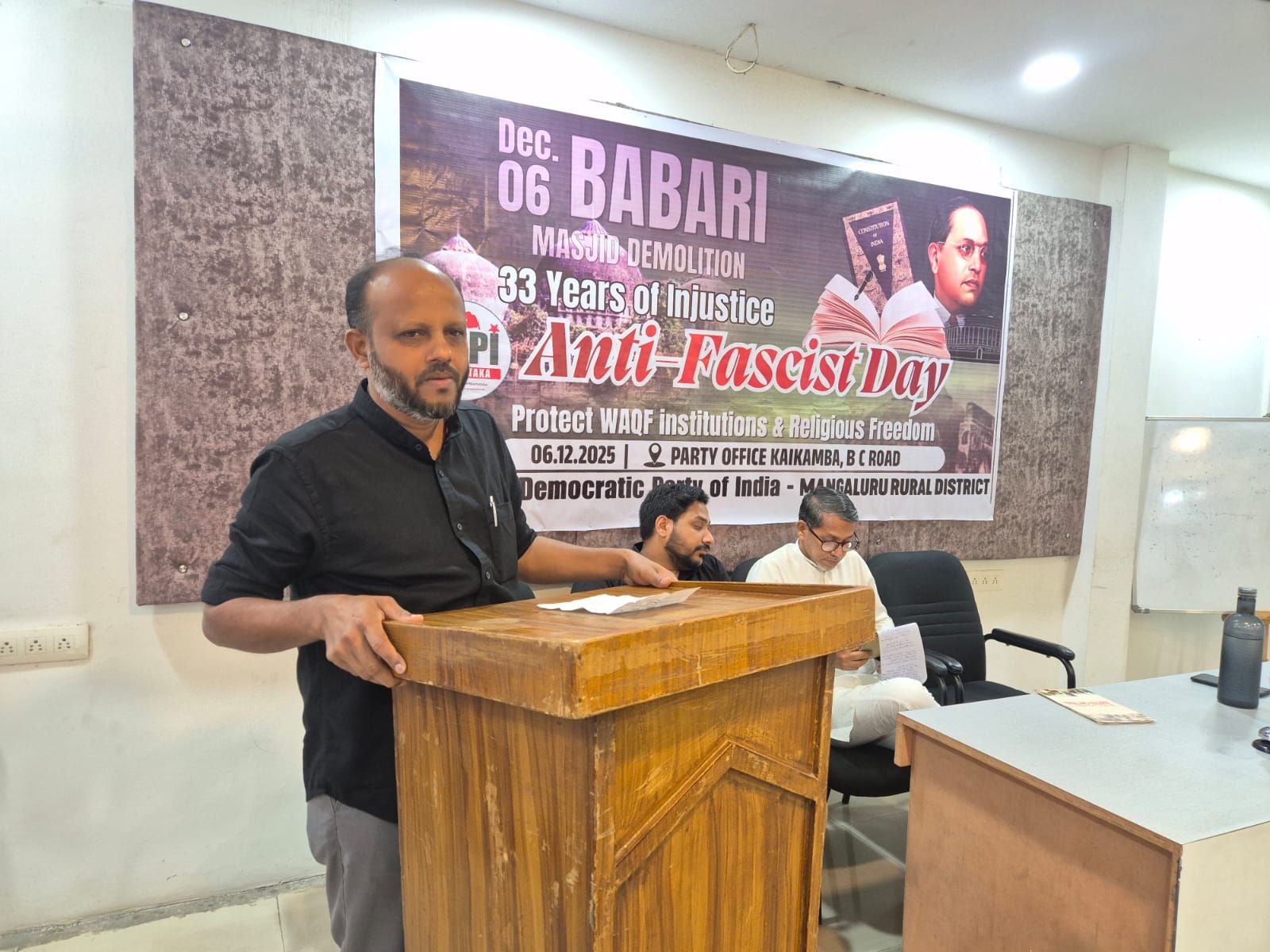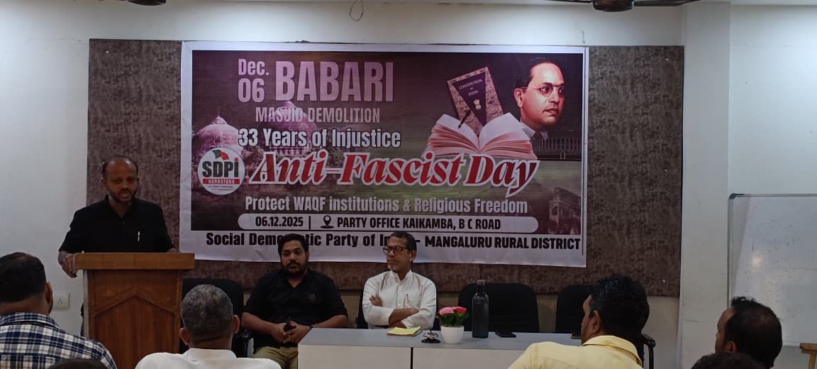 ಮಂಗಳೂರು: ಬಾಬರಿ ಮಸೀದಿಯನ್ನು ಸಂಘಪರಿವಾರದ ದುಷ್ಕರ್ಮಿಗಳು ವ್ಯವಸ್ಥಿತವಾಗಿ ಪೂರ್ವಯೋಜಿತ ಷಡ್ಯಂತ್ರದೊಂದಿಗೆ ಧ್ವಂಸಗೊಳಿಸಿದ ಡಿಸೆಂಬರ್ 06ರ ದಿನವು ದೇಶದ ಇತಿಹಾಸದಲ್ಲಿ ಕರಾಳ ದಿನವೆಂದು ಘೋಷಿಸಿ ಸೋಶಿಯಲ್ ಡೆಮಾಕ್ರಟಿಕ್ ಪಾರ್ಟಿ ಆಫ್ ಇಂಡಿಯಾ ರಾಷ್ಟ್ರಾದ್ಯಂತ ಫ್ಯಾಸಿಸ್ಟ್ ವಿರೋಧಿ ದಿನವಾಗಿ ಕರೆ ನೀಡಿದ ಹಿನ್ನೆಲೆಯಲ್ಲಿ ಎಸ್ಡಿಪಿಐ ಮಂಗಳೂರು ಗ್ರಾಮಾಂತರ ಜಿಲ್ಲಾ ಸಮಿತಿಯು ಬಿಸಿರೋಡ್ ನ ಪಕ್ಷದ ಕಚೇರಿಯಲ್ಲಿ ವಿಚಾರ ಸಂಕಿರಣ ಹಮ್ಮಿಕೊಂಡಿತು.